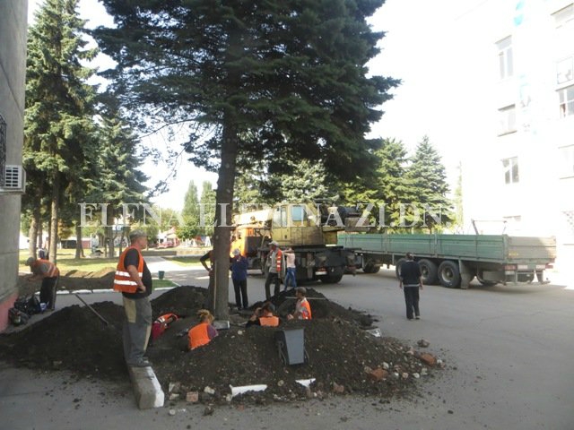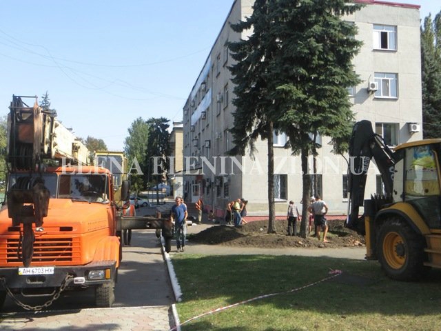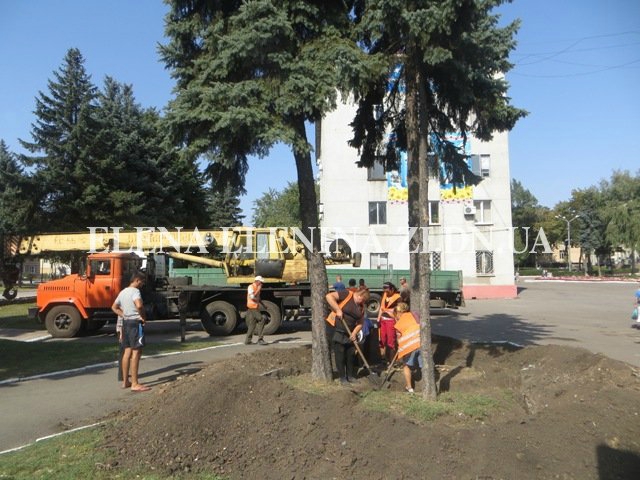 Всего за пару-тройку часов женщины окопали дерево возле входа в городской совет. Красавицу-ель с помощью крана и лафета перевезли на новое место посадки. Бригада коммунальщиц приступила к выкапыванию остальных хвойных. Горисполкомовские ёлочки теперь будут расти возле детской площадки неподалеку от старого места.