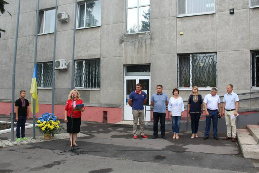 Сегодня, в День государственного флага, жители Покровска собрались на площади Шибанкова. Возле здания исполкома под звуки гимна был поднят национальный стяг.