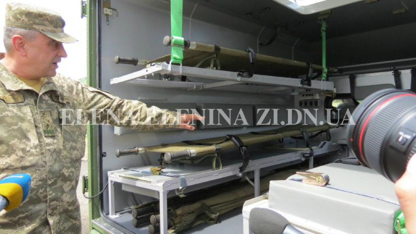 Спецтехника отправится по городам области и будет использована для оказания медицинской помощи воинам АТО. В числе полученной техники были специально оборудованные машины под хирургический и рентген-кабинет. Президент на месте заслушал оперативную ситуацию, а затем привел присутствующим журналистам статистику по военным медикам, которые принимают участие в военном конфликте.