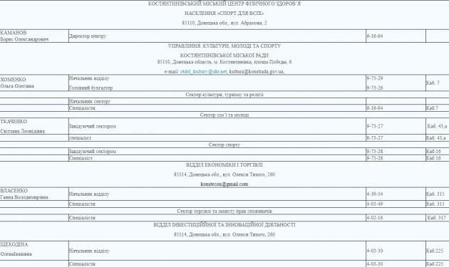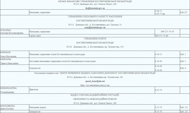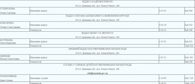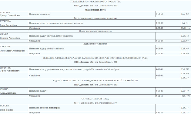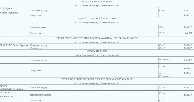 Теперь дозвониться к специалистам горисполкома в Константиновке стало проще. В сети появились телефоны отделов исполкома Константиновской ОТГ с адресами их месторасположения и фамилиями ответственных лиц.