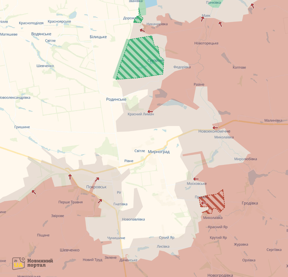 Также армия РФ заняла новые позиции вблизи Променя на юг от Мирнограда.