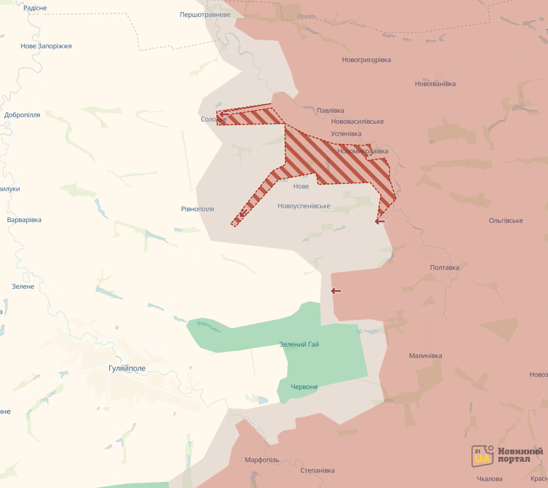 Сообщается о значительном продвижении россиян в Запорожской области, а также возле Мирнограда и южнее Константиновки.