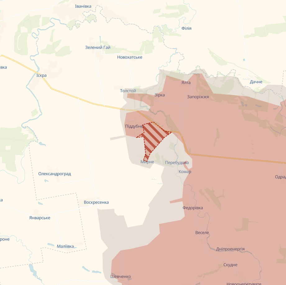 Кроме того, аналитики фиксируют продвижение армии РФ в Мирном (возле админграницы с Днепропетровщиной).