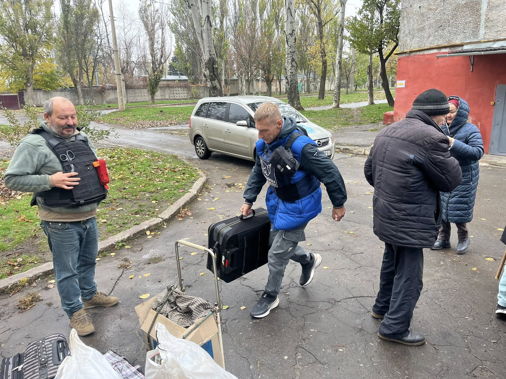Как сообщает руководитель миссии в Донецкой области Евгений Ткачев, людей вывезли в относительную безопасность, после чего их пересадили в комфортные автомобили.