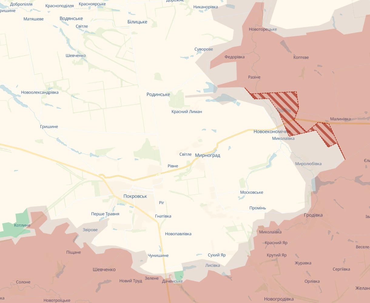 Сообщается о продвижении российской армии возле Новоэкономического на Покровском направлении (на выступе между Покровском и Константиновкой, восточнее Мирнограда). А также возле Зеленого Гая на Харьковщине (в направлении Боровой, Изюмский район).