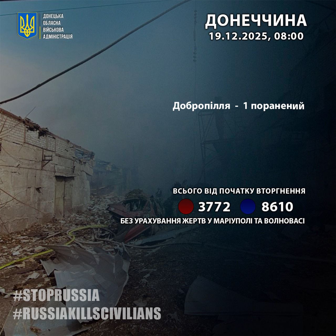 Однако только в Донецкой области количество человеческих потерь вследствие полномасштабного вторжения России, на утро 19 декабря 2025 года составляет 3 772 мирных жителей.