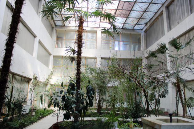 Сад по праву считается «сердцем» дворца культуры. Растения привозили из Абхазии, сорок лет назад там летали попугаи ара, пели канарейки, а в фонтане плавали полуторакилограммовые карпы.