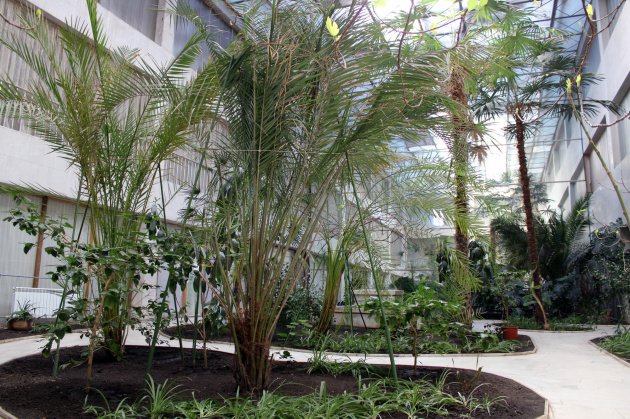 Во Дворце культуры в Торецке есть зеленый уголок, в котором растут пальмы, фиговые деревья, кактусы и другие экзотические растения.