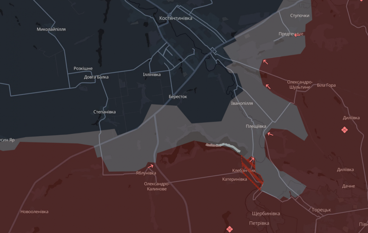 Судя по изменениям, под контроль россиян полностью перешел поселок Клебан-Бык в Ильиновской громаде. Также противник продвинулся возле Дроновки на Славянском направлении (район Северска), которая уже полностью в красной зоне.