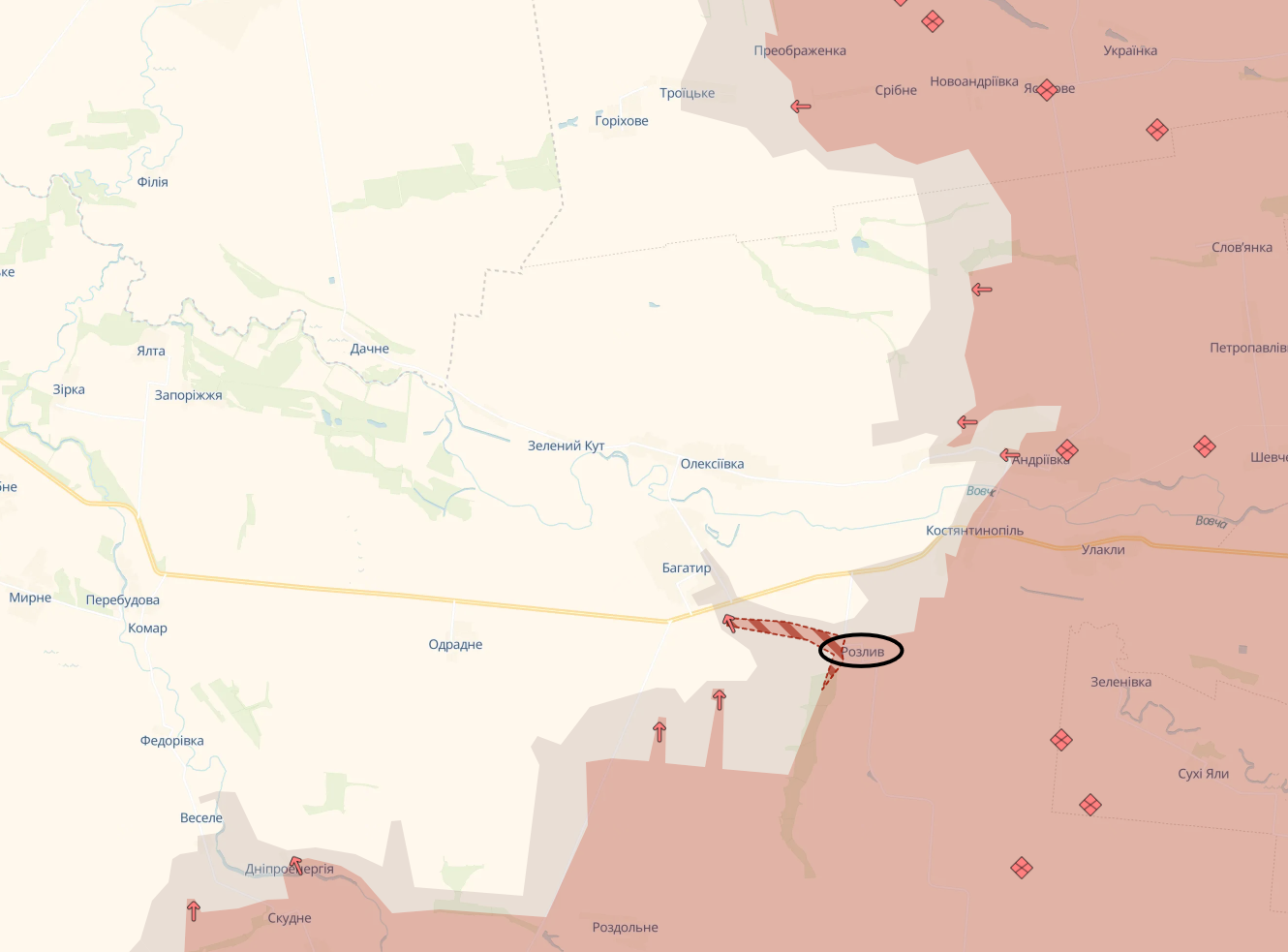 Российская армия продвинулась возле Александрополя, Разлива и Макеевки, сообщает DeepState по состоянию на вечер 10 мая.