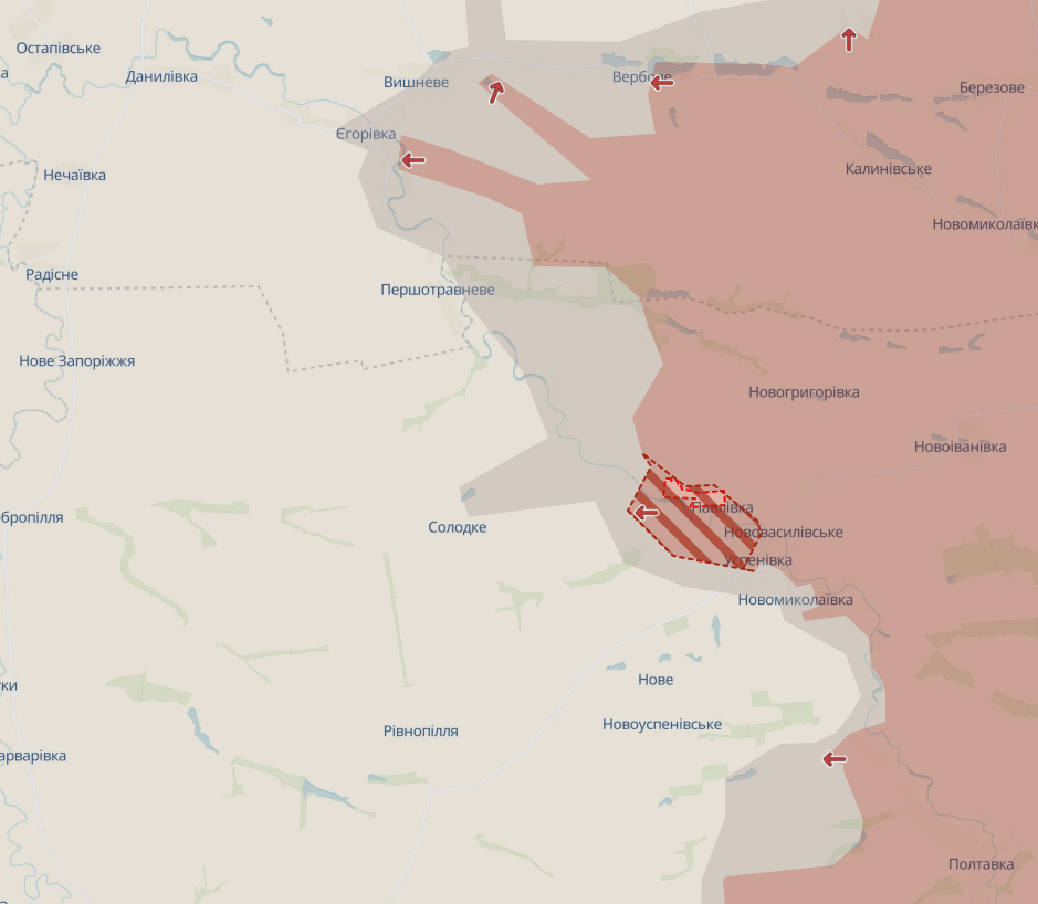 Сообщается, что армия РФ продвинулась в Запорожской области: на востоке враг оккупировал Павловку и продвинулся в Успеновке, на юге россияне продвинулись в Плавнях и Приморском.