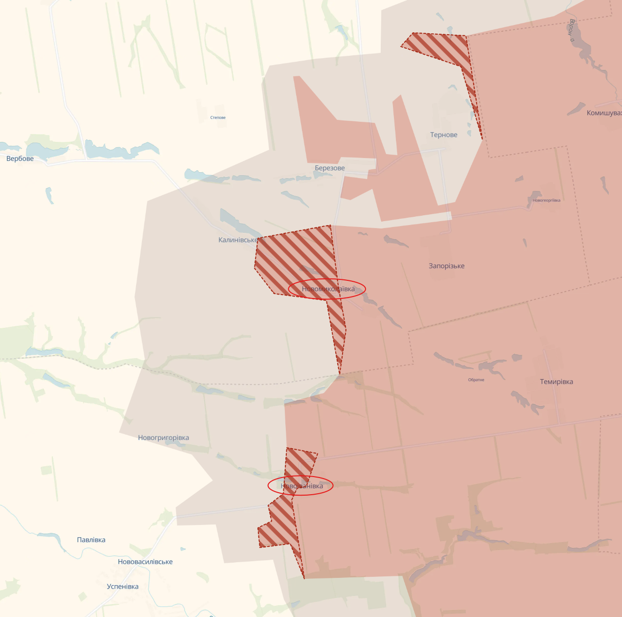 Сегодня, 24 сентября, на карте боевых действий отмечается, что два населенных пункта перешли под контроль армии РФ. Это Новониколаевка Днепропетровской области и Новоивановка Запорожской области. Также сообщается о продвижении российских войск в данном районе: возле Калиновского, Тернового и Новоивановки.