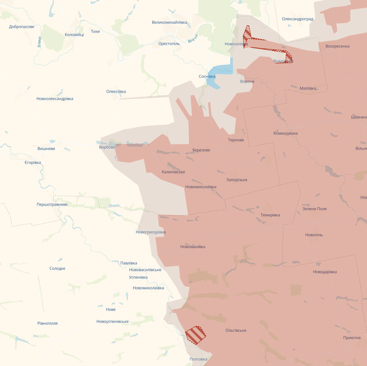 Также аналитики фиксируют продвижение армии РФ вблизи Новоселовки и в Январском. И вблизи Полтавки.