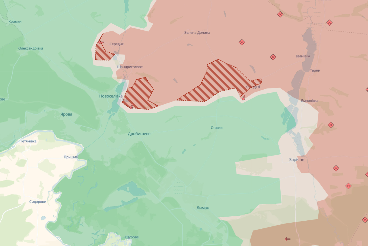 Россиянам удалось захватить позиции вблизи населенных пунктов Среднее, Дерилово и Колодцев.