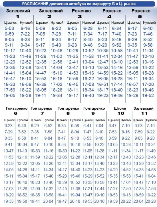 Первый рейс автобус «5-Б» делает с Центрального рынка, затем – на Нулевой, а потом опять через Новоселовку на Центральный рынок. И автобус по маршруту «№ 51» отправляется с ж/д в 5:30 и через Нулевой идет на Новоселовку. А оттуда – обратно.