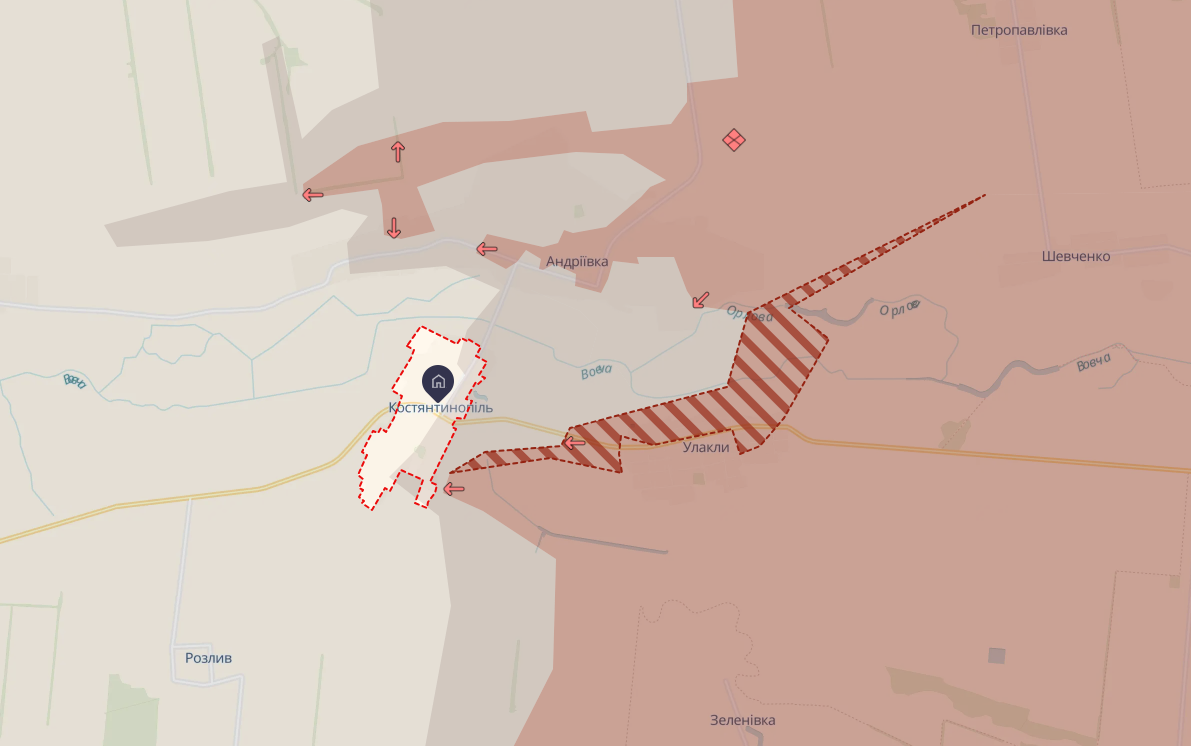 "Константинополь до сих пор находится под контролем Сил Обороны. Сегодня [9 марта — ред.] противник запустил несколько групп, которые проникли на северные, восточные и западные окраины села и снялись с "аквафрешами" [российский флаг — ред.]. Часть групп была уничтожена, какая-то часть до сих пор может скрываться в селе до того, как их обнаружат и уничтожат. В Улаклах враг продвинулся и проводит накопление живой силы для дальнейших штурмов на Константинополь", — пишет паблик.