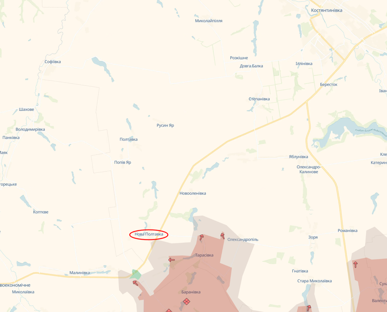 Армия противника продолжает двигаться на данном участке, пользуясь уязвимостью украинской обороны. Как сообщил вечером 4 мая украинский военный с позывным Мучной, россияне перешли трассу Покровск-Константиновка и пробуют заходить в Новую Полтавку.