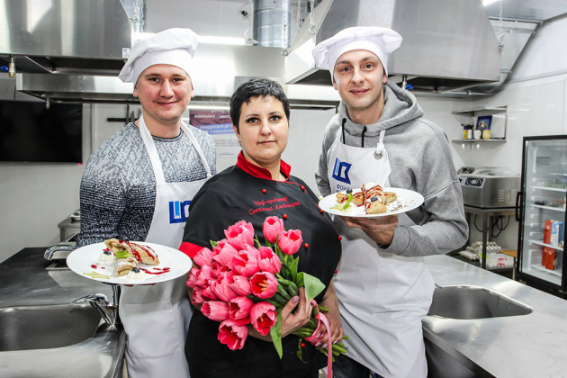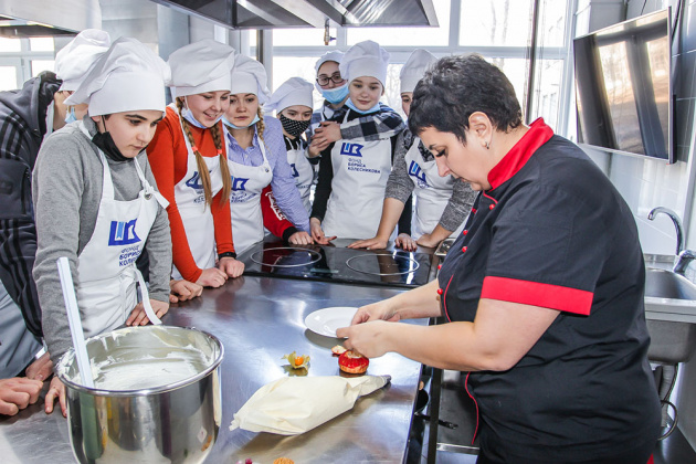 С 1 по 5 марта в Школе поварского искусства проходила Неделя приготовления десертов. Кондитер из Днепра Светлана Алейникова знакомила учеников Школы с процессом приготовления пирожных шу с кракелином и вишневым конфи, классического наполеона с ягодным соусом, шоколадного лава кейка с ванильным мороженым, шоколадного мусса парфе, блинчиков с маскарпоне, смородиновым джемом и малиновым соусом.