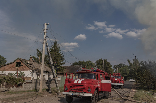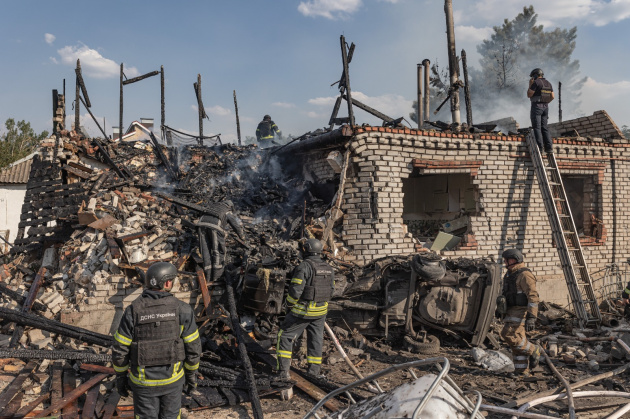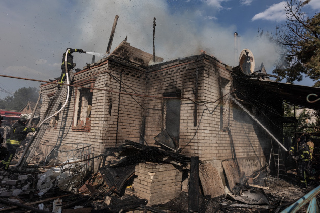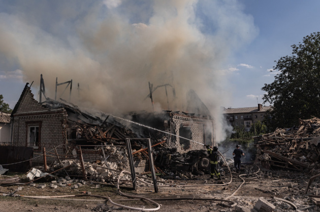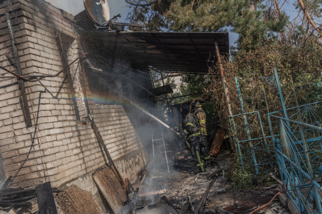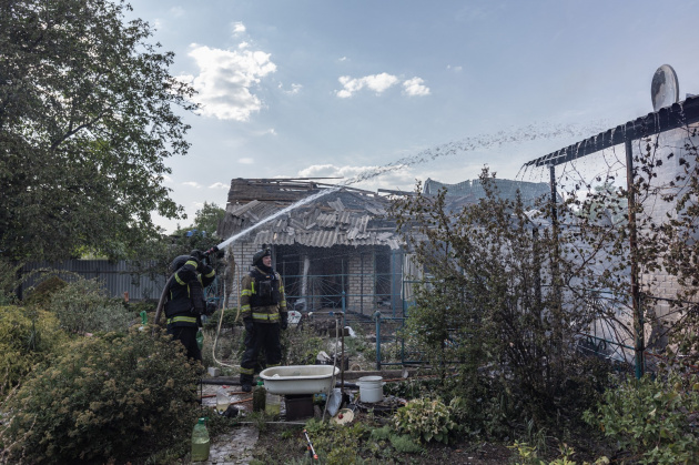 "21 июля оккупанты нанесли авиаудар по жилому сектору города Константиновка Краматорского района. В результате бомбардировки возник пожар в частном жилом доме и на открытой территории. Спасатели на месте обстрела ликвидировали возгорание разрушенных строительных конструкций дома и легкового автомобиля на общей площади 124 кв. м, а также потушили пожар сухой травы на площади 150 кв. м", — говорится в сообщении.