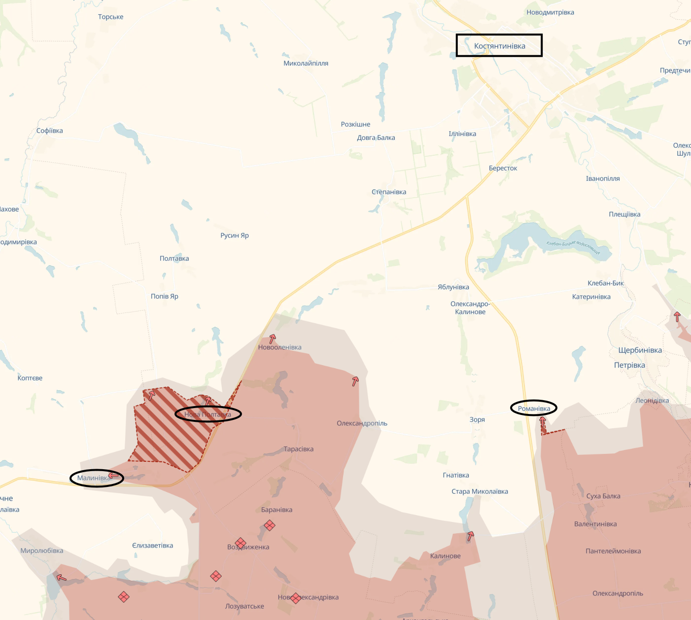 По данным аналитического паблика DeepState, враг движется с двух сторон: в районе трассы Покровск-Константиновка и трассы Донецк-Константиновка.