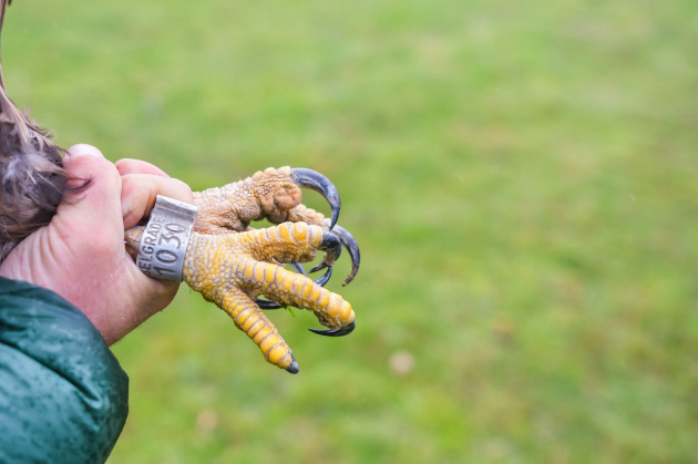 Орлана обозначили специальными метками и доставили на участок, на котором он вырос, надеясь, что орланы-родители позаботятся о своем малыше.