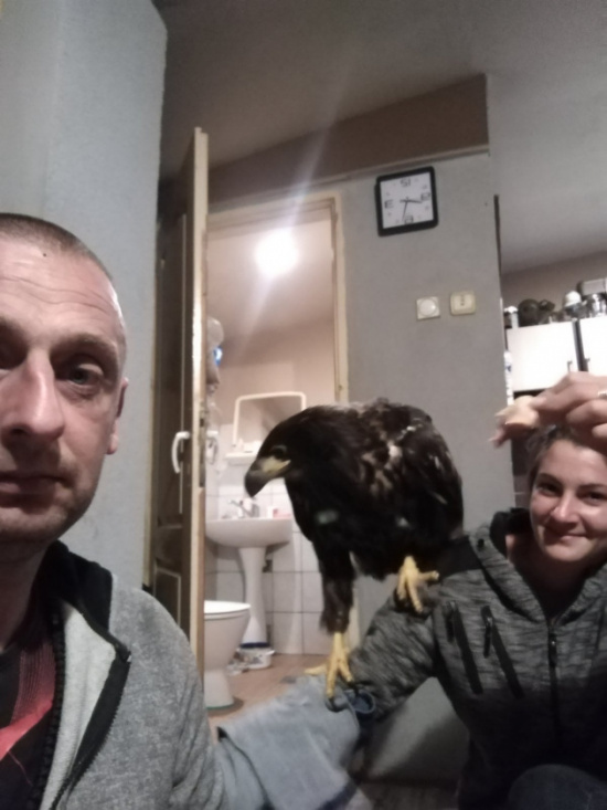 После того, как хищник окреп, он решил отдохнуть в 800 метрах от своего дома. В это время лесной работник Марко Буковацки заметил пернатого хищника на берегу Дуная. Считая птицу раненой, и нуждающейся в помощи, лесник поймал ее и доставил к себе домой. Новый питомец быстро освоился среди людей и стал домашним любимцем семьи Буковацки. Люди заботились о птице и хорошо кормили ее рыбой, а позже передали в местную ячейку агентства охраны природы. После нескольких дней наблюдений ее вернули в природную среду.