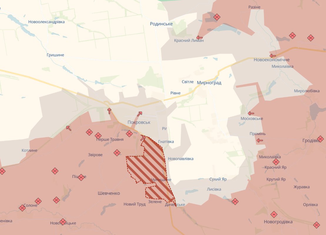 По словам нескольких источников издания и ряда OSINT-аналитиков, зоны контроля в Покровске следующие: южная и юго-западная часть - под контролем российский солдат, центральная часть, вокруг железной дороги - в серой зоне, северная - под контролем ВСУ.