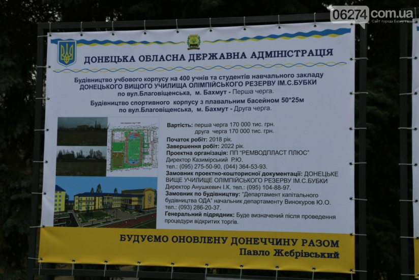 Во время линейки заместитель председателя ДонОГА Виктор Ремский сообщил, что в Бахмуте построят современную спортивную базу для ДВУОР. А именно: реконструируют общежитие, построят учебный корпус на 400 человек и спортивный корпус с 50-метровым плавательным бассейном. Реализовать задумку планируется за 4 года.