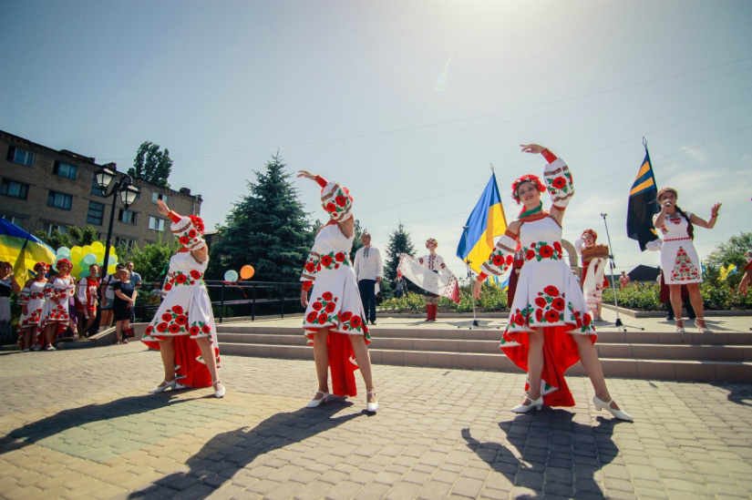 Ярким украшением праздника стали запуск шаров и голубей в небо. А украинский символический рушник объединил всех присутствующих, показав, что Донеччина – это Украина.