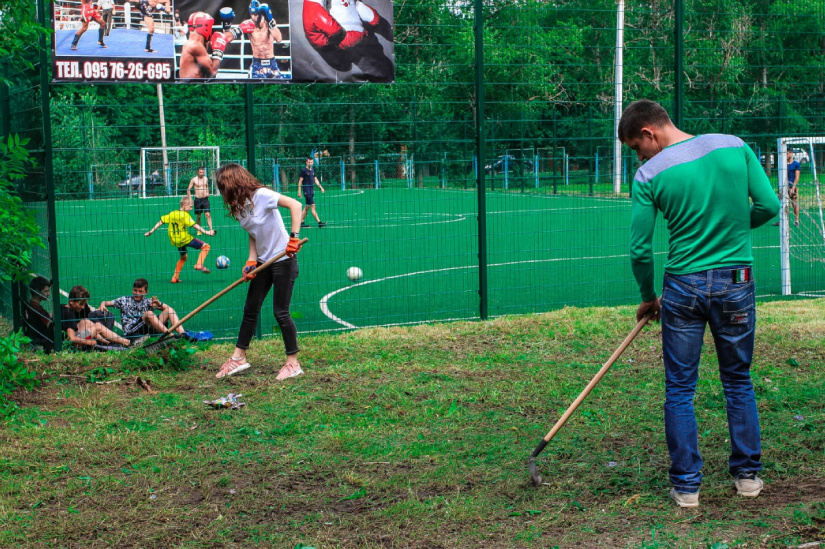 Благотворители, хоккеисты, а также сотрудники управления культуры, молодежи и спорта Константиновской городской администрации, представители ГО «Футбольный клуб Донбасс» и Константиновского городского центра физического здоровья населения «Спорт для всех» привели в порядок городскую спортивную площадку с футбольным полем.