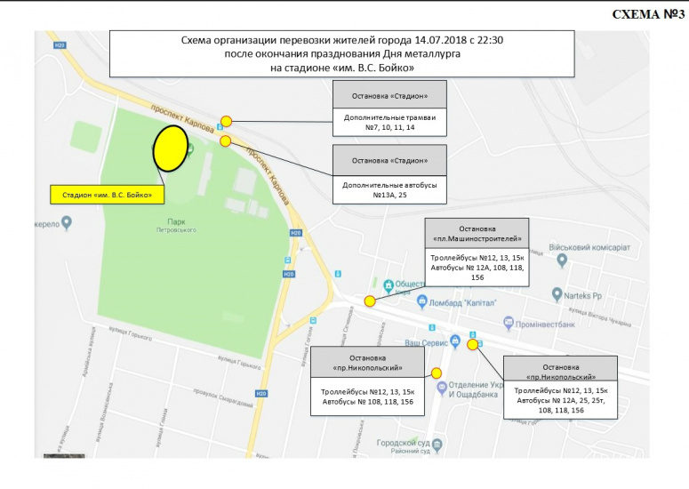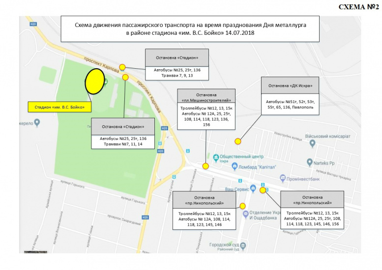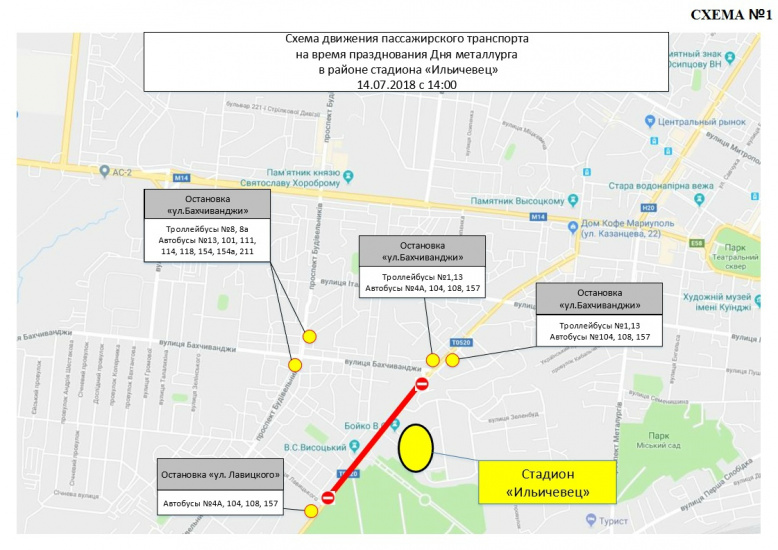 В связи с проведением торжественных мероприятий и массовых гуляний в честь Дня металлурга и горняка в субботу с 14:00 в Мариуполе изменится схема движения общественного транспорта, так как участок дороги по пр. Нахимова от ул. Бахчиванджи до ул. Лавицкого будет использоваться исключительно как пешеходная зона.