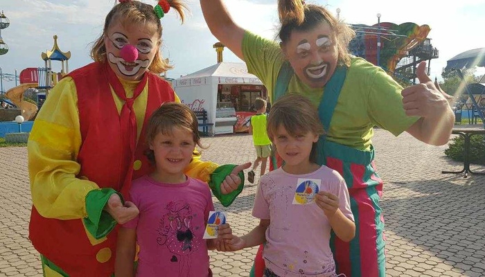 Мальчишек и девчонок развлекали клоуны и аниматоры, которые провели с детьми конкурсы и устроили для них шоу мыльных пузырей. Апогеем празднования стало катание на аттракционах, которое привело детей в настоящий восторг.