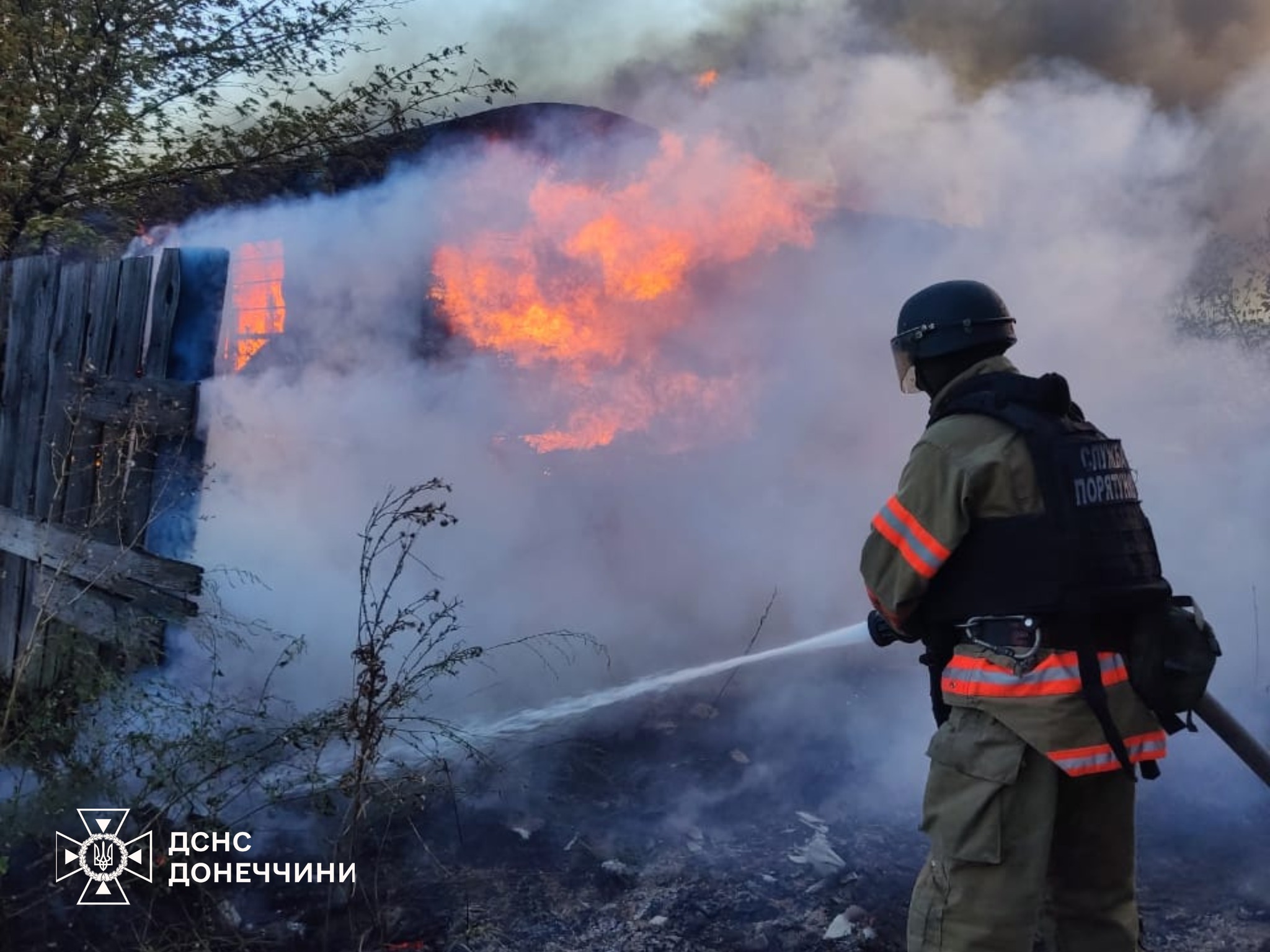 Чрезвычайники локализовали возгорание на площади 236 кв. м, однако из-за повторных обстрелов были вынуждены прекратить тушение.К счастью, обошлось без пострадавших.