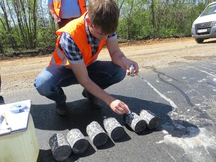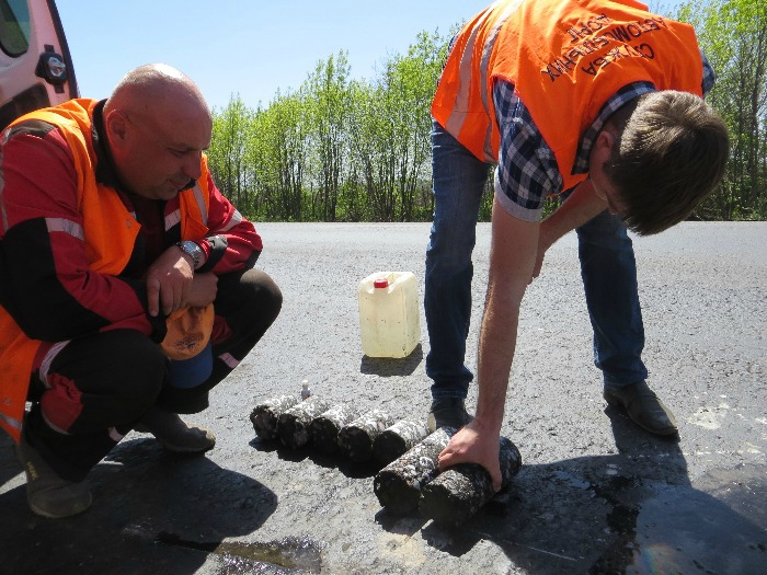Службой автодорог осуществляется инспекционный контроль качества ремонтных работ. В частности, на днях отобраны образцы-керны частично устроенного выравнивающего слоя асфальтобетонного покрытия.