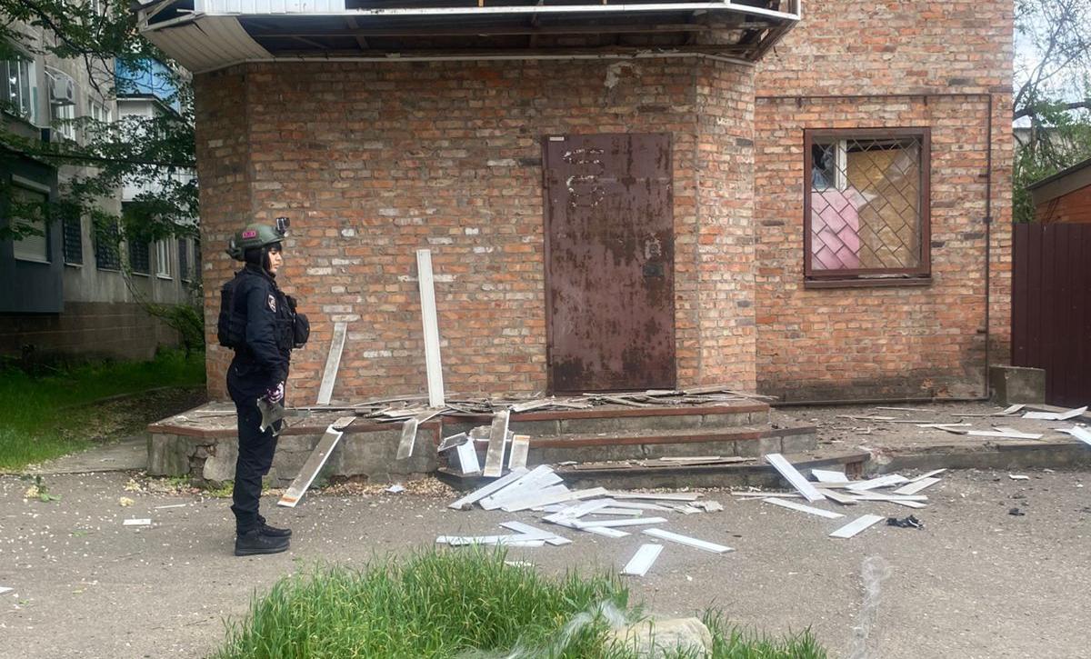 Вчера в 15:20 произошел вражеский обстрел FPV-дроном на оптоволокне по Константиновке. Один человек ранен. Поврежден фасад торгового киоска.