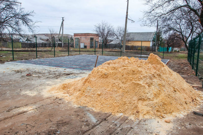 Продолжаются работы на месте установки нового игрового комплекса в районе Червоный в Константиновке. Ограждение и покрытие уже готовы. На днях начнется монтаж горок и качелей. Объект полностью будет готов на следующей неделе.