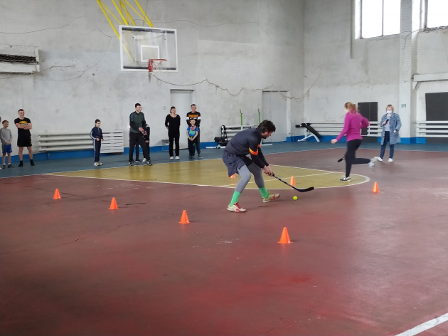 В спортивном мероприятии приняли участие 6 семей. Они соревновались в трех командных эстафетах: «Полоса препятствий», «Скорость с мячом», «Флорбол».