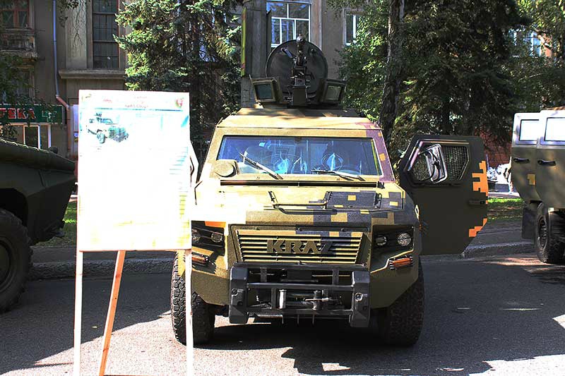 На выставке представлены около двух десятков единиц – автомобилей, легкой бронетехники, установка залпового огня, артиллерийское орудие, санитарные и спасательные автомобили.