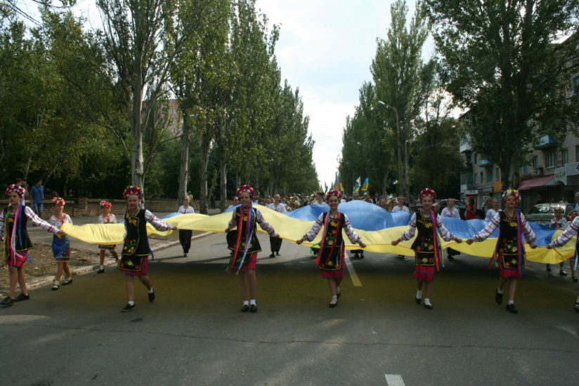 В Краматорске в честь празднования Дня независимости Украины состоялось патриотическое шествие. Несколько тысяч людей собрались около памятника «Самолета», чтобы пройтись по улицам города до площади Мира и гордо заявить, что они украинцы.