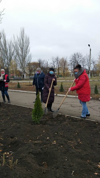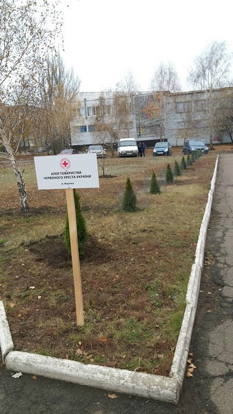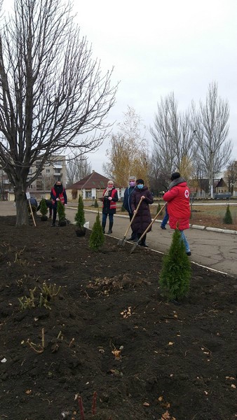 Общество Красного Креста Украины в Марьинке высадило новые деревья, приблизившись еще на шаг к созданию городской аллеи.