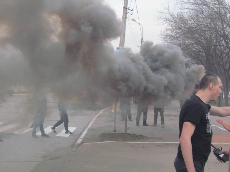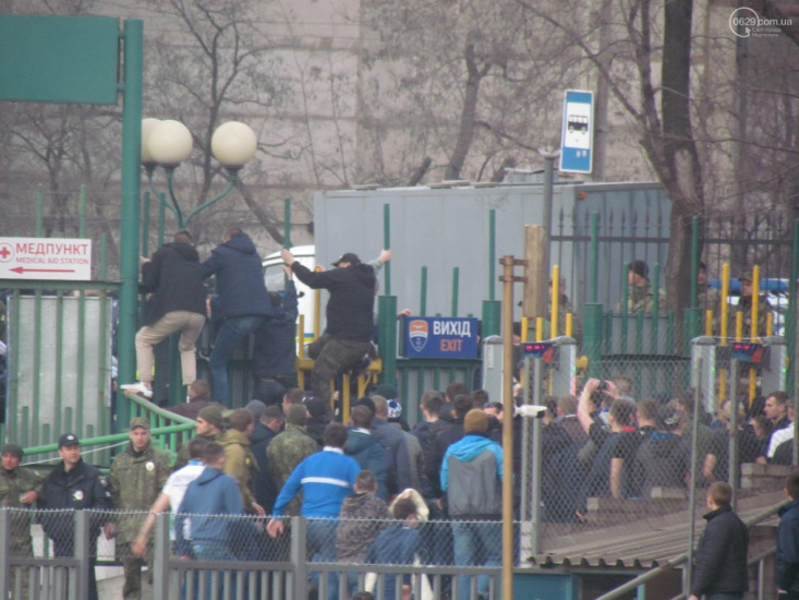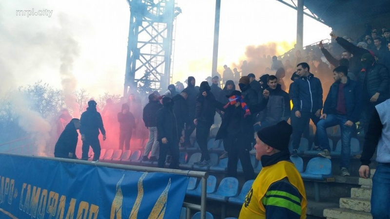 Матч проходил между «Мариуполем и Динамо». Сообщается, что болельщиков киевлян задержала полиция. На их защиту бросились фанаты обеих команд. В полицейских полетели камни, зажглись фаеры.