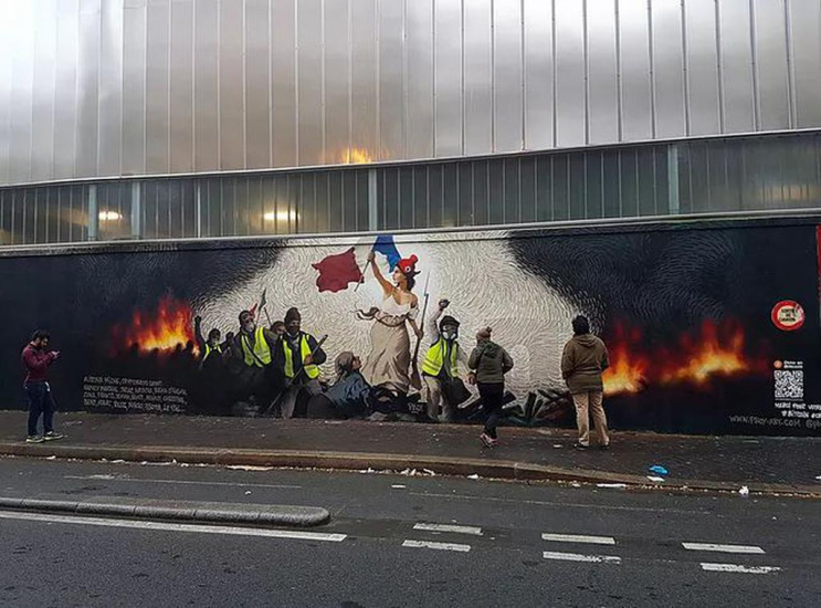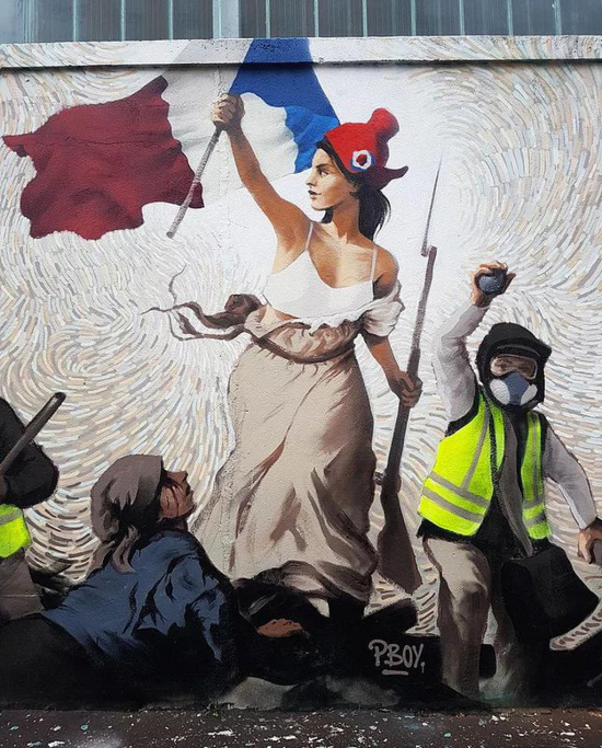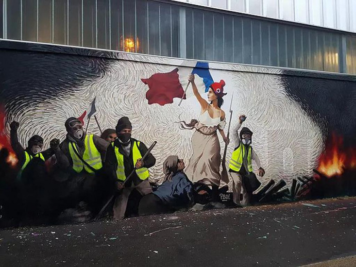 AFP. При этом точное местоположение мурала остается неизвестным, но по некоторым данным он находится в 19-м округе. Работа повторяет концепцию картины «Свобода, ведущая народ» Эжена Делакруа, но ее смысл немного изменен с учетом современных тенденций. Так, за спиной женщины в центре — Марианны, символа Французской Республики — находятся не представители разных социальных классов, а активисты протестного движения желтых жилетов.