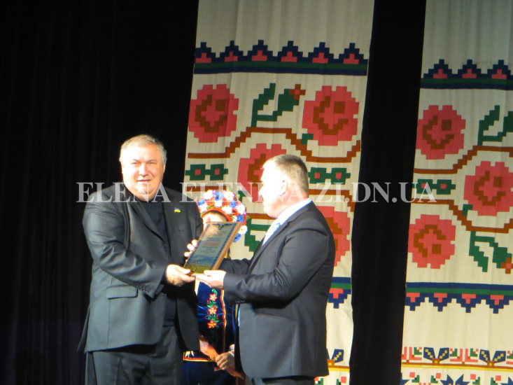 Затем на сцену поднялся руководитель ОГА. Он отметил, что в этом году урожай зерновых в области составил два миллиона тонн. Такой результат за всю историю Донетчины был лишь семнадцать раз. На четыре тысячи голов вырос крупный рогатый скот, а поголовье свиней самое большое в стране, почти пятьсот тысяч.