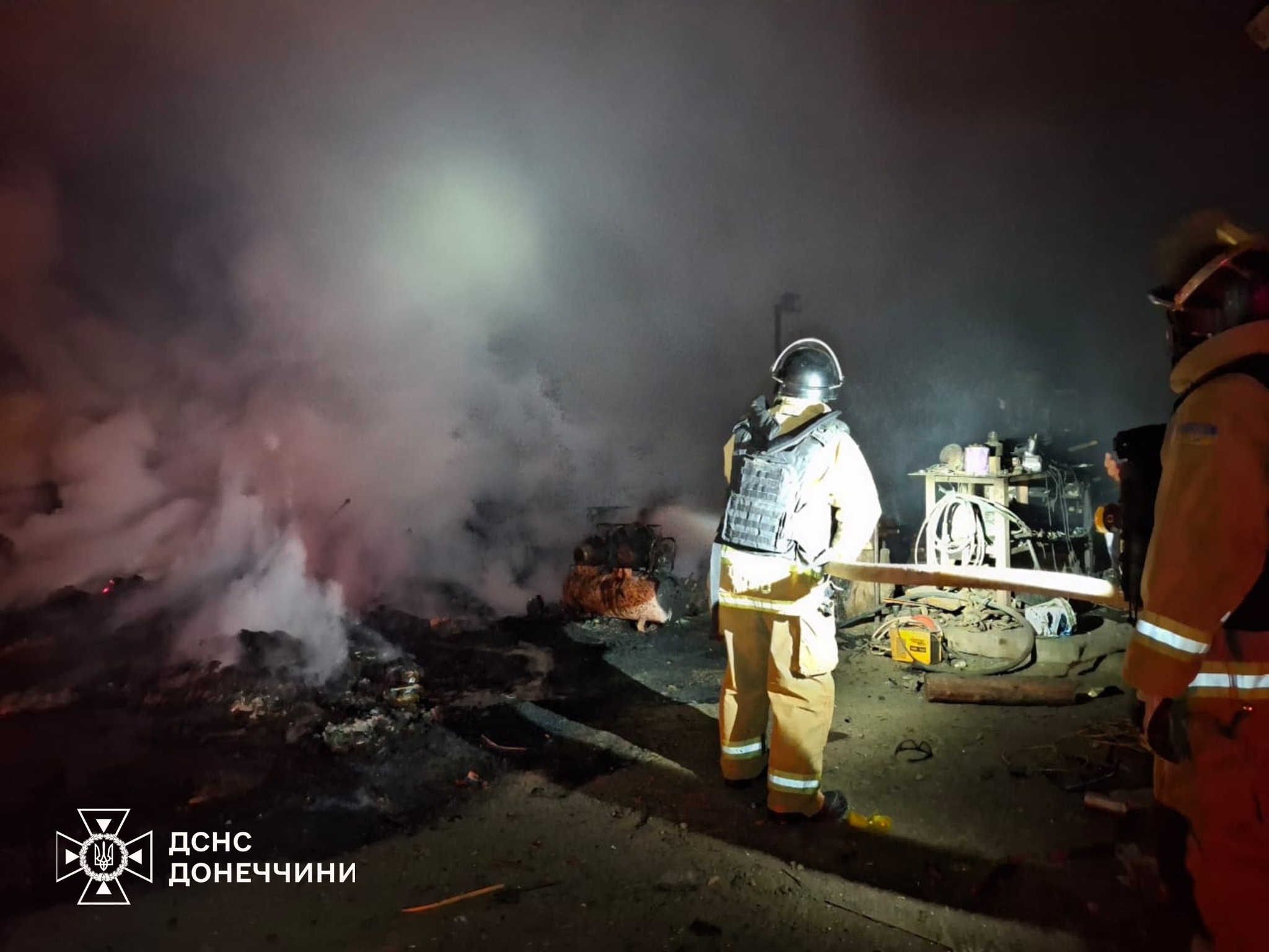- Мирная Долина: спасатели ликвидировали пожар двух складских построек на площади 300 кв. м, возникшие в результате обстрела.