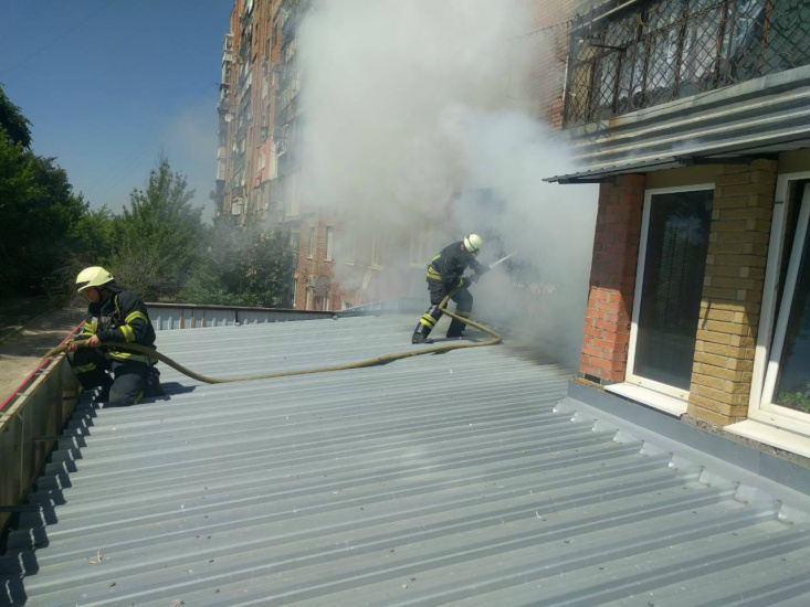 В Славянске на улице Свободы спасатели тушат пожар в квартире. По словам очевидцев, сотрудники ГСЧС прибыли на место через десять минут после вызова.