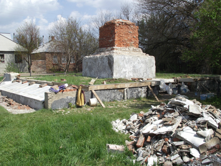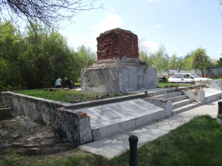 В процессе начального этапа полностью убрали стелу и мемориальные плиты, где запечатлены имена солдат, погибших в годы Великой Отечественной войны.
