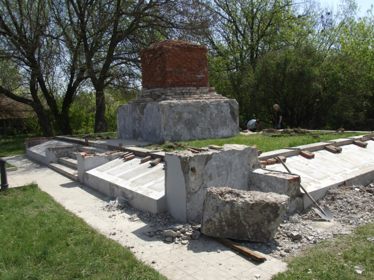 Настоящие работы стартовали в апреле этого года. Специалисты обследовали мемориал и пришли к заключению, что долго монумент на братской могиле советских воинов не простоит. Поэтому потребовалась полная реконструкция.