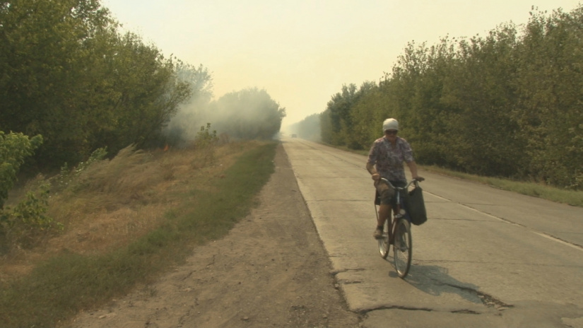 Водитель автомобиля «KIA Sportage» переезжая сквозь густую дымовую завесу, снизил скорость. Видимость в этом месте нулевая. Остановиться – нельзя, сдать назад – рискованно. Поскольку движение в этом месте не перекрыто. «KIA Sportage» двигался вперед с предельно-низкой скоростью. В это время сзади «на пятки» ему наступал грузовой МАН, который перевозит асфальт. Как рассказал водитель МАНа, у него возникло ощущение, что он сейчас задохнется от едкого дыма. Или воспламениться его машина. Но он продолжил движение. И столкнулся с «KIA Sportage», его он не смог увидеть даже с близкого расстояния. От сильного удара автомобиль слетел в кювет и воспламенился. Водитель и пассажир едва смогли открыть дверь, поскольку ее заклинило. Через пару минут от машины ничего не осталось. Из вещей мужчины спасли только барсетку и мобильный телефон. У пассажира «KIA Sportage» от удара возникли сильные боли в спине.