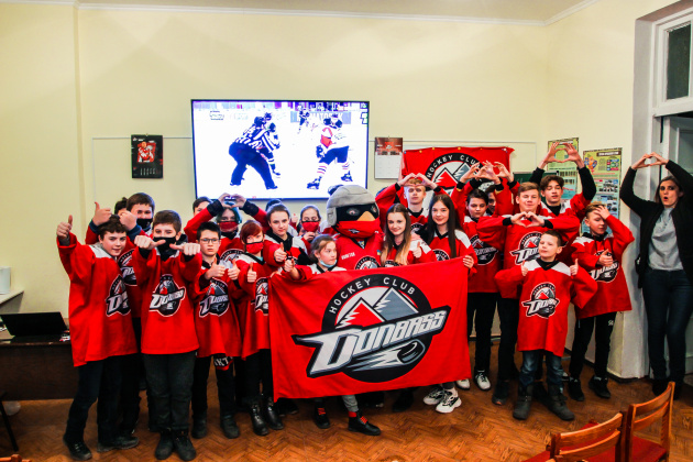 В рамках молодежного проекта «Давай, вболівай!», который реализуют Фонд Бориса Колесникова и ХК «Донбасс» для учащихся школ и техникумов Донетчины, за донецкие клубы у телевизора болел фан-сектор Константиновской образовательной школы №16.