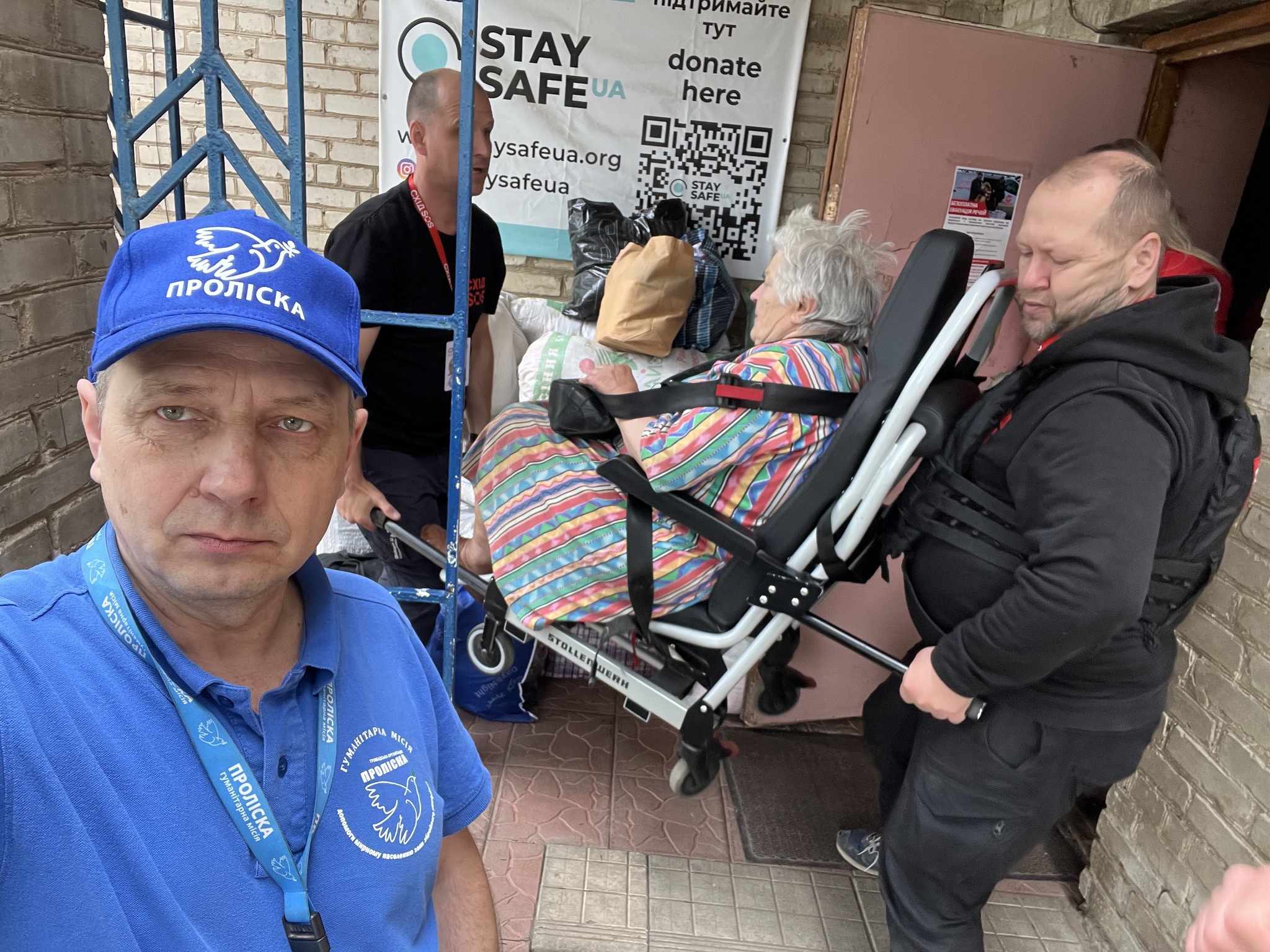 Волонтеры эвакуировали и людей из Дружковской громады. Из Николайполья, находящегося в 9 км от линии фронта, эвакуировалась семья из трех человек. Мужчина получил ранения при обстреле, после выздоровления и выписки из больницы семья решила немедленно уезжать. Отец семьи имеет инвалидность после инсульта с частичным параличом. Люди забрали с собой двух собак с котёнком.